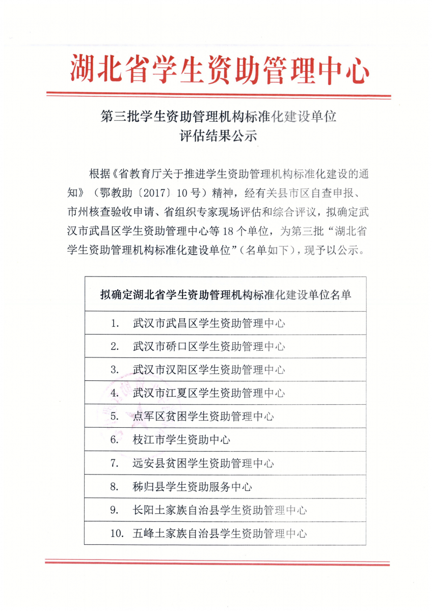 第三批学生资助管理机构标准化建设单位评估结果公示